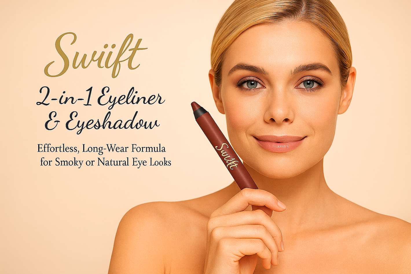 Most eye products force you to choose between convenience, performance, or quality — but Swiift delivers both in one refined tool. While traditional liners and shadows require multiple steps, brushes, and bulky palettes, the Swiift 2-in-1 Pen streamlines your entire routine with precision, blendability, and long-lasting wear. Our creamy, true-to-shade formula melts effortlessly into the skin, stays vibrant all day, and adapts to any look you want to create — from subtle daytime definition to bold, smoky glamour.